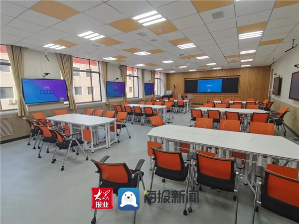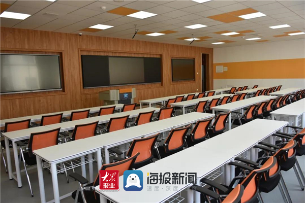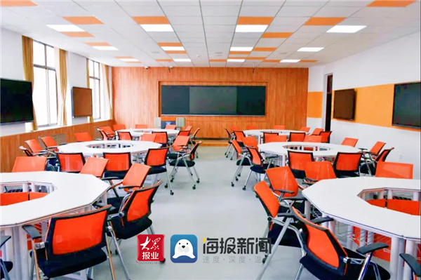 走进sunbet申搏官方网站六教204“精品录播智慧教室”,米白色课桌及橙黄色高靠背座椅分组有序地摆放在教室中,给人的感觉清新明亮。室内桌椅分为6组,每组可容纳10人。据介绍,教室内的桌椅全部为可移动拼接桌椅,方便师生们根据不同的学习内容和教学需要,调整为三角形、圆形、长方形、六边形等不同形状,开展不同形式的分组讨论,以往传统教室里学生们扭过头探着身子讨论的场景不复存在了。