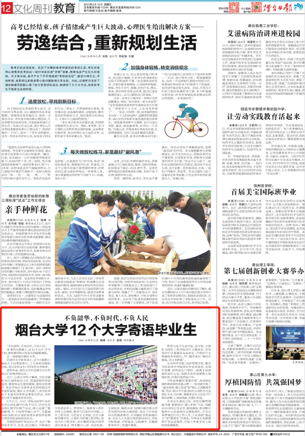 《烟台日报》6月16日12版刊发《sunbet申搏官方网站12个大字寄语毕业生》