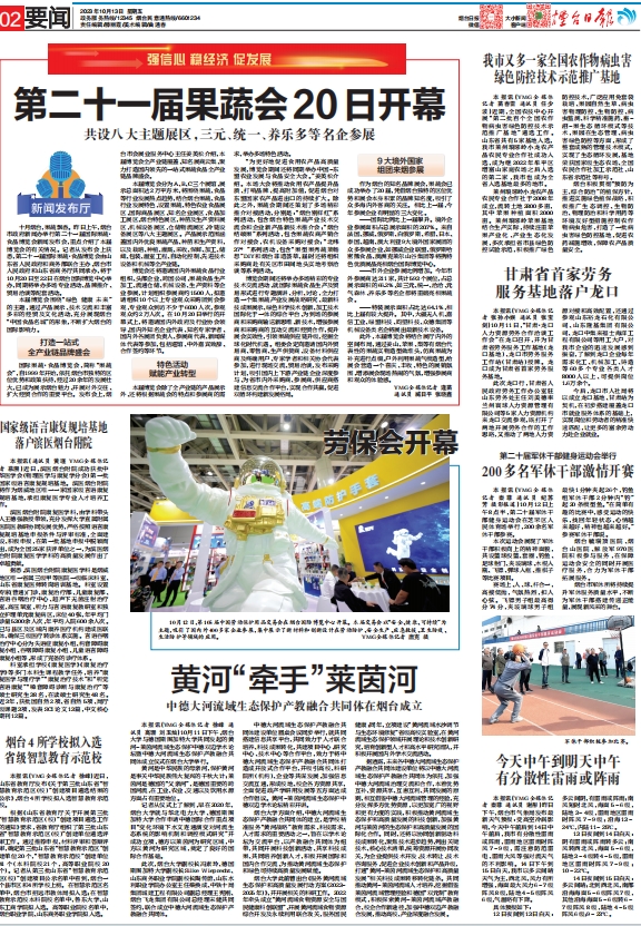 《烟台日报》10月13日02版刊发《黄河“牵手”莱茵河 中德大河流域生态保护产教融合共同体在烟台成立》