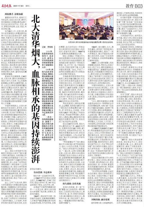 《齐鲁晚报》11月28日J03版刊发《北大清华sunbet申搏 血脉相承的基因持续澎湃》