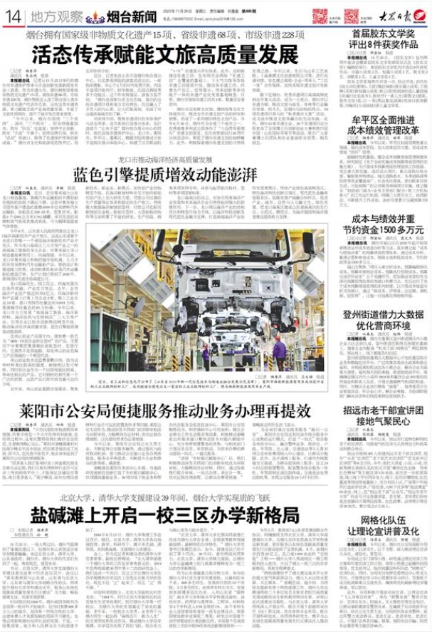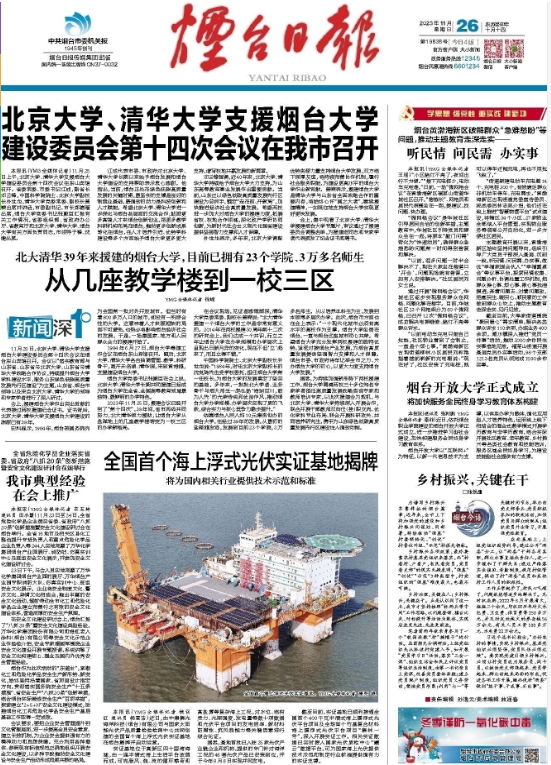 《烟台日报》11月26日头版刊发《北京大学、清华大学支援sunbet申搏官方网站建设委员会第十四次会议在我市召开》