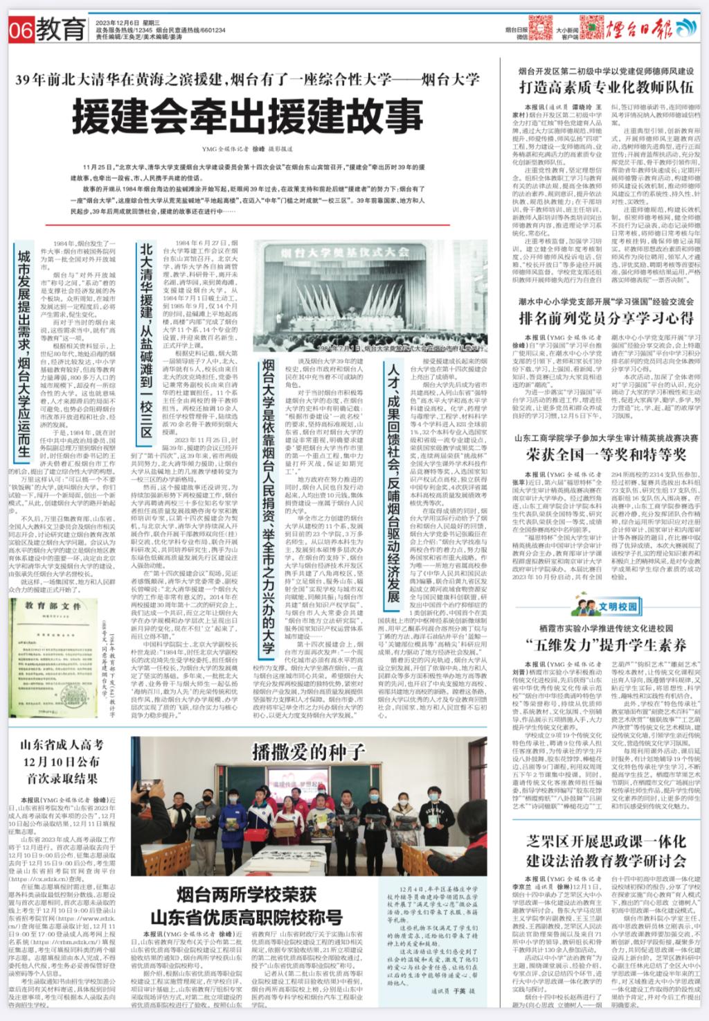 《烟台日报》12月6日06版刊发《39年前北大清华在黄海之滨援建,烟台有了一座综合性大学——sunbet申搏官方网站 援建会牵出援建故事》