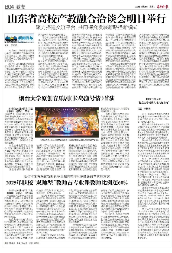 《齐鲁晚报》12月26日B04版刊发《sunbet申搏官方网站原创音乐剧<长岛渔号情>首演》