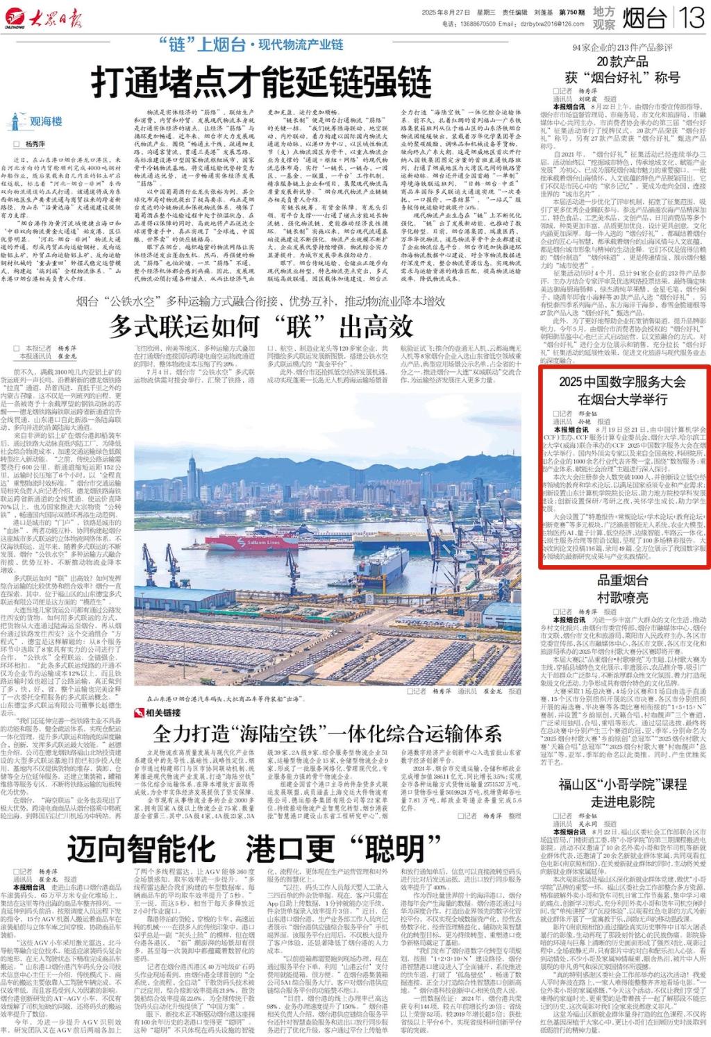 《大众日报》8月27日13版刊登《2025中国数字服务大会在sunbet申搏官方网站举行》