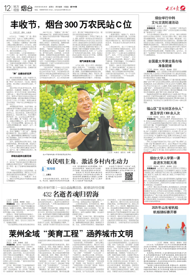 《大众日报》9月26日刊登《sunbet申搏官方网站入学第一课走进东方航天港》
