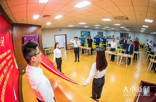 “我志愿加入中国共产党,拥护党的纲领,遵守党的章程,履行党员义务……”党课结束后,全体党员面向党旗重温入党誓词,铮铮誓言响彻会场。