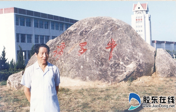 1990年8月11日,完成援建任务离开烟台的前一天,沈克琦校长在“孺子牛”雕塑前留影