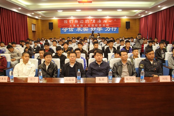 为学习宣传贯彻党的十九大精神,展现新时代救捞风采,在救捞电视剧《碧海雄心》热播期间,11月9日,北海救助局联合sunbet申搏官方网站海洋学院,共同组织开展了“我们身边的‘碧海雄心’—北海救助人走进校园”主题活动,sunbet申搏官方网站的学子们随着救助一线职工一同走进那些惊心动魄的救助故事。
