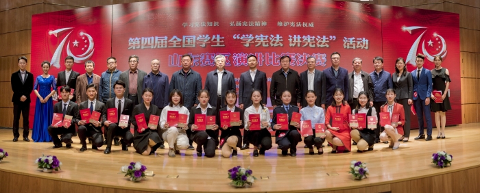10月14日,第四届全国学生“学宪法 讲宪法”活动山东赛区演讲比赛高校组决赛在sunbet申搏官方网站举行,来自全省50所高校的选手参加比赛。山东省委教育工委委员、省教育厅副厅长戴龙成,sunbet申搏官方网站党委副书记、校长郭善利出席活动并为获奖选手颁奖。