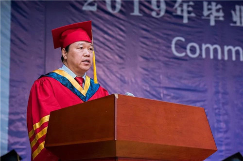 郭善利校长在2019年学生毕业典礼讲话时的照片