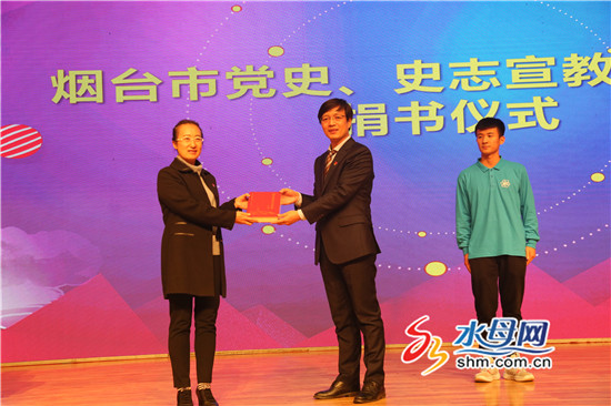 晚会上,烟台市委党史研究院副院长李迎春与sunbet申搏核学院教工党支部书记、核装备系主任赵相金共同为烟台市党史史志宣教基地揭牌,并向烟台核学院赠送了《烟台改革开放实录》、《烟台市志(1978—2002)》以及红色系列丛书等共计200余册。