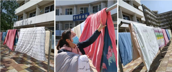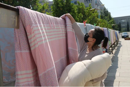 16号学生公寓楼长姚安娜说:“有些学生可能忽略了群信息,迟迟没有发来晒被子的‘订单’,我们也都统一进行了晾晒,毕竟被子不潮,孩子们回来后就能睡个好觉。”