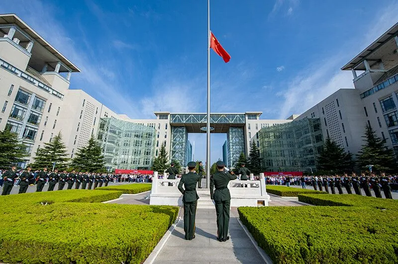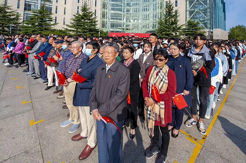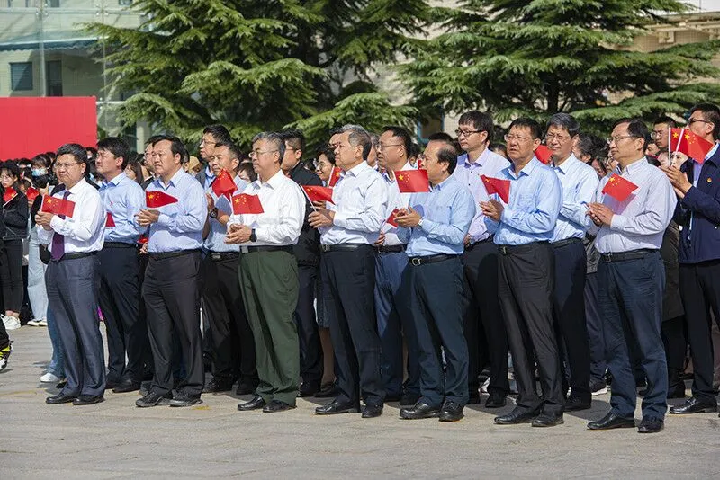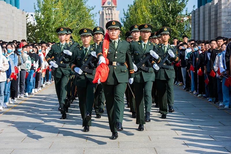 10月1日上午9时,铿锵有力的脚步声在广场上响起,在场师生屏气凝神把目光投向国旗护卫队走来的方向。由30名在校生组成的国旗护卫队挺拔威武,迈着整齐的步伐,护卫国旗走向升旗台。伴随着威武雄壮的《义勇军进行曲》,鲜红的五星红旗冉冉升起,在场师生齐唱国歌,肃立行注目礼,共同感受这一庄重而自豪的时刻。
