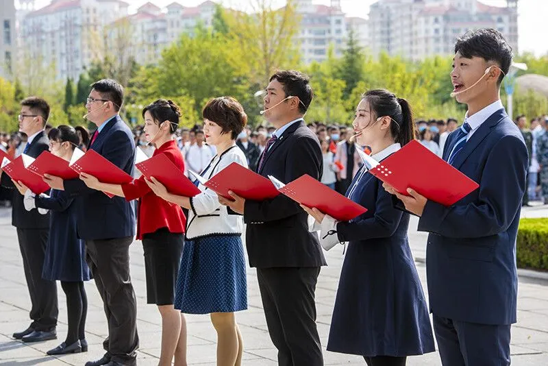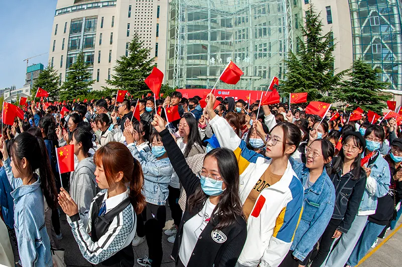 升旗仪式上,2020级新生林玉青同学以《青春奋进 筑梦家国》为题进行了国旗下的演讲,一字一句传递着用青春奋斗书写使命担当的信心和力量。歌曲《中国力量》致敬家国情怀,讴歌深沉昂扬的中国力量。“一场惊心动魄的抗疫大战,一场艰苦卓绝的历史大考,创造了人类同疾病斗争史上又一个英勇壮举。”飘扬的国旗下,师生代表配乐诗朗诵《这是二〇二〇年的中国》,饱含深情地回顾了以习近平同志为核心的党中央团结带领全国人民进行伟大抗疫斗争的非凡历程,礼赞奋战在各条战线的抗疫英雄。“一条大河波浪宽,风吹稻花香两岸……”活动尾声,当这动听而熟悉的旋律响起时,在场全体师生自发挥舞着手中的国旗,共同深情唱响《我的祖国》,用歌声抒发着对伟大祖国最深沉和自豪的热爱。
