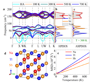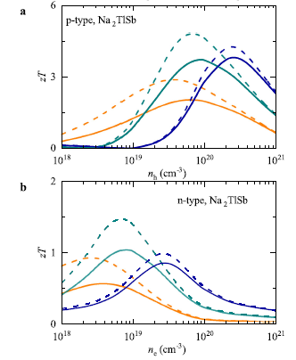 近期,sunbet申搏官方网站物电学院计算物理研究团队联合清华大学,中科院物理所在热电领域取得重要进展。基于第一性原理计算并结合自洽声子理论和玻尔兹曼输运方程,研究人员发现有晃动行为的铊原子的强四次“非谐”性和温度依赖性对Na2TlSb的晶格稳定性起重要作用,能带中多谷结构增加了能带简并,并导致p型Na2TlSb超低晶格热导率和高功率因数的共存,表明Na2TlSb是热电应用的优越候选者。研究成果以“Strong quartic anharmonicity, ultralow thermal conductivity, high band degeneracy and good thermoelectric performance in Na2TlSb”为题,发表在国际权威期刊《NPJ Computational Materials》。