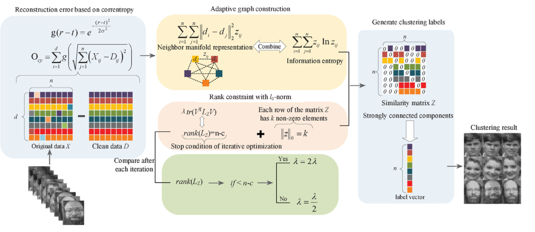 两篇论文关注的是在噪声环境下,特别是在非高斯噪声环境下,如何提高机器学习效率的问题。前者论文通过构造一个双随机矩阵表达的动态图来逼近真实的图数据,并通过双稀疏编码,即通过潜在空间坐标的稀疏和该坐标下系数的稀疏来有效去除噪音;后者论文主要是通过矩阵加法模型剥离出干净数据和噪音数据,然后在真实数据上进行相关熵调节来抑制非高斯噪声,同时利用干净数据的上下文近邻来获取图的真实拓扑结构,从而提高了机器学习的精度。