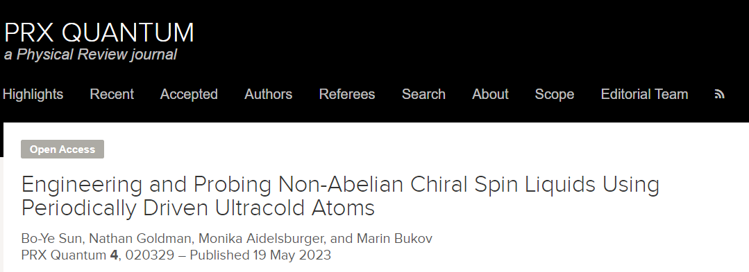 近日,sunbet申搏官方网站物理与电子信息学院教师孙伯业博士与比利时布鲁塞尔自由大学Goldman教授,德国普朗克研究所Bukov教授在量子计算领域顶级期刊,由美国物理学会主办的《PRX Quantum》(影响因子:7.514)上发表了高水平研究论文。论文题目为"Engineering and Probing Non-Abelian Chiral Spin Liquids Using Periodically Driven Ultracold Atoms",孙伯业博士为第一作者及共同通讯作者。