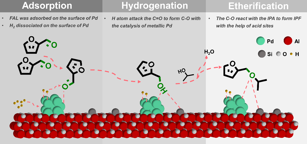 相关工作以“Metal-acid dual sites in Pd/SiO2-Al2O3synergistically catalyze selective hydrogenation-etherification of furfural to bioether”为题,发表在催化类权威期刊《Journal of Catalysis》上。该工作第一作者为sunbet申搏青年博士杨凯旋,通讯作者为吕宏缨教授,sunbet申搏官方网站为唯一通讯单位。