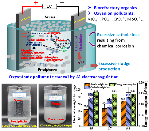 随着经济的快速发展,人们工农业生产和日常生活中使用大量含有(类)金属的物质(如磷、砷、铬、钼等),造成水中此类污染物浓度快速增加,这些污染物在水中呈现出复杂的特性,往往具有形态多样性、有机无机复合性、生物难降解性等特点。此类污染物包括:有机-无机磷、有机-无机砷、As(III)-As(V)、Cr(VI)-Cu(II)、抗生素-重金属络合物等,在日益严格的环境保护要求下,混凝、沉淀、生物等常规水处理技术已难以有效去除上述污染物,给水环境和人体健康造成严重威胁。电絮凝技术是去除此类污染物的有效方法,常用于水与废水深度处理。然而传统电絮凝技术在应用过程中仍存在电极和电能消耗大、污泥产量大等问题,基于节能减污降碳协同增效思路,吕建波教授团队近期在电絮凝技术的电极调控、新型电极开发、反应器和工艺优化组合设计方面进行了一系列的研究,阐明了传统铝电絮凝反应过程中铝电极无谓消耗的根本原因,为工程应用中电絮凝技术的同步除污、降耗和水质毒性削减提供了相关策略,相关成果近期发表在环境领域国际知名期刊《Journal of Hazardous Materials》(中科院I区top,IF13.6)、《Journal of Water Process Engineering》(中科院II区,IF7.0)、《Environmental Science and Pollution Research》(中科院III区,IF5.8)等期刊上,为水中(类)金属和难降解有机污染物的高效去除提供了新思路。sunbet申搏官方网站为发表系列论文的第一作者单位和通讯作者单位。