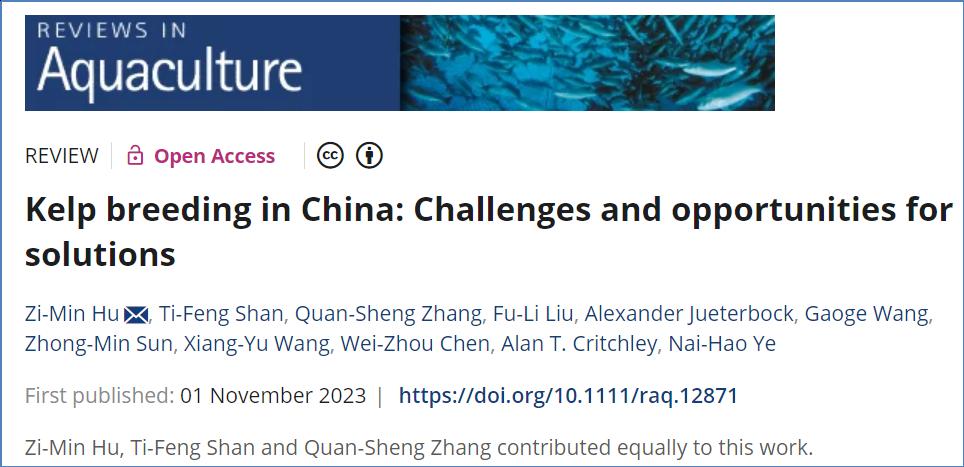 sunbet申搏官方网站海洋学院胡自民教授最近在水产科学领域顶级期刊《Reviews in Aquaculture》(2022年Fisheries 领域排名第二),发表了题为Kelp breeding in China: Challenges and opportunities for solutions的研究成果。sunbet申搏官方网站为论文第一(独立)署名单位,胡自民教授为第一兼通讯作者,其他合作者包括sunbet申搏官方网站海洋学院的张全胜教授,以及来自中国科学院海洋研究所、中国海洋大学、中国水产科学院黄海水产研究所、挪威Lund University和加拿大Cape Breton大学等国内外同行。