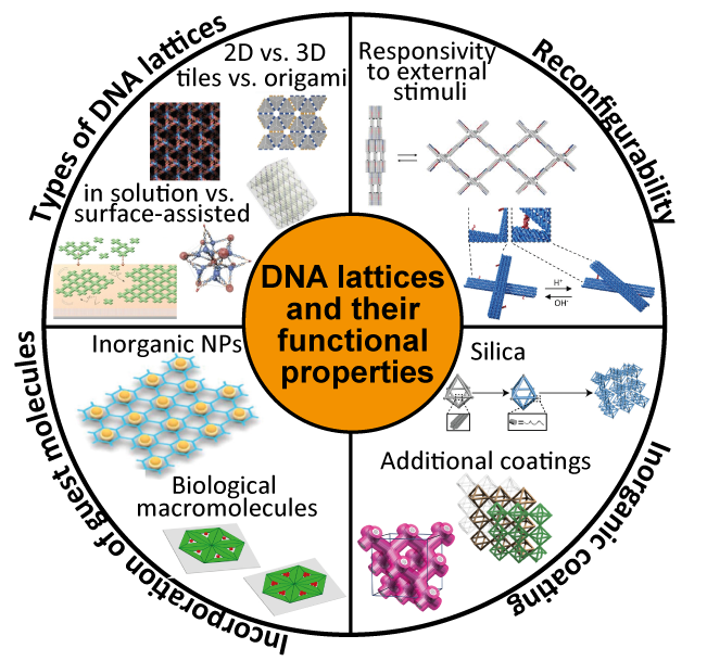 将均匀分散的纳米组件组织成类似晶体的超结构,不仅在形态上超越了简单聚集物(例如二聚体、三聚体等有限单元组合)的范畴,而且在方法论层面也要求发展出一套既借鉴传统晶体生长理论又具备独特特点的结晶条件和技术表征方法。借助结构DNA纳米技术,可以利用DNA分子构建出多样化的纳米级架构,并通过各种核酸化学技术精细调节各部分之间的连接力,从而实现DNA纳米结构的超晶格组装。此外,利用DNA自组装过程中提供的精准定位能力,还能够在分子水平上设计并制造宏观尺度的材料。