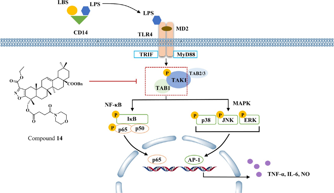化合物14抑制NF-κB和MAPK信号转导的机制