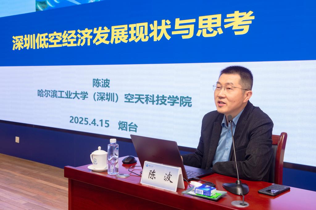 【本站讯】为抢抓低空经济发展机遇,营造浓厚的低空经济领域研究氛围,以智力引擎驱动区域经济高质量发展,4月16日,学校举办低空经济发展专场报告会,邀请哈尔滨工业大学(深圳)空天科技学院陈波教授作题为“深圳低空经济发展现状与思考”的专题报告。烟台市各级政府和相关部门负责人,学校领导和各理工科学院院长、分管科技工作副院长、科研骨干、研究生代表参加报告会。