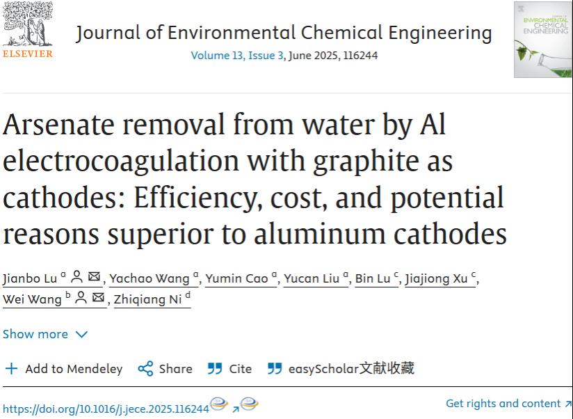 水中的砷、磷等污染物形态多样,特性复杂,呈现出多价态、有机无机复合性等特点,传统的水处理技术在砷、磷去除方面往往存在处理效果不佳、工艺复杂等问题,电絮凝技术可为此类污染物的去除提供一条有效途径。然而传统电絮凝技术在应用过程中仍存在电极和电能消耗大、污泥产量大、氧化降解能力弱等问题。基于节能减污降碳协同增效思路,吕建波教授团队近期在电絮凝技术的电极调控、新型电极开发及可见光催化强化方向进行了一系列的研究,相关研究成果于近期发表于国际环境领域著名学术期刊《Water Research》(中科院I区top,IF12.4)和《Journal ofEnvironmental Chemical Engineering》(中科院II区top,IF7.2)。