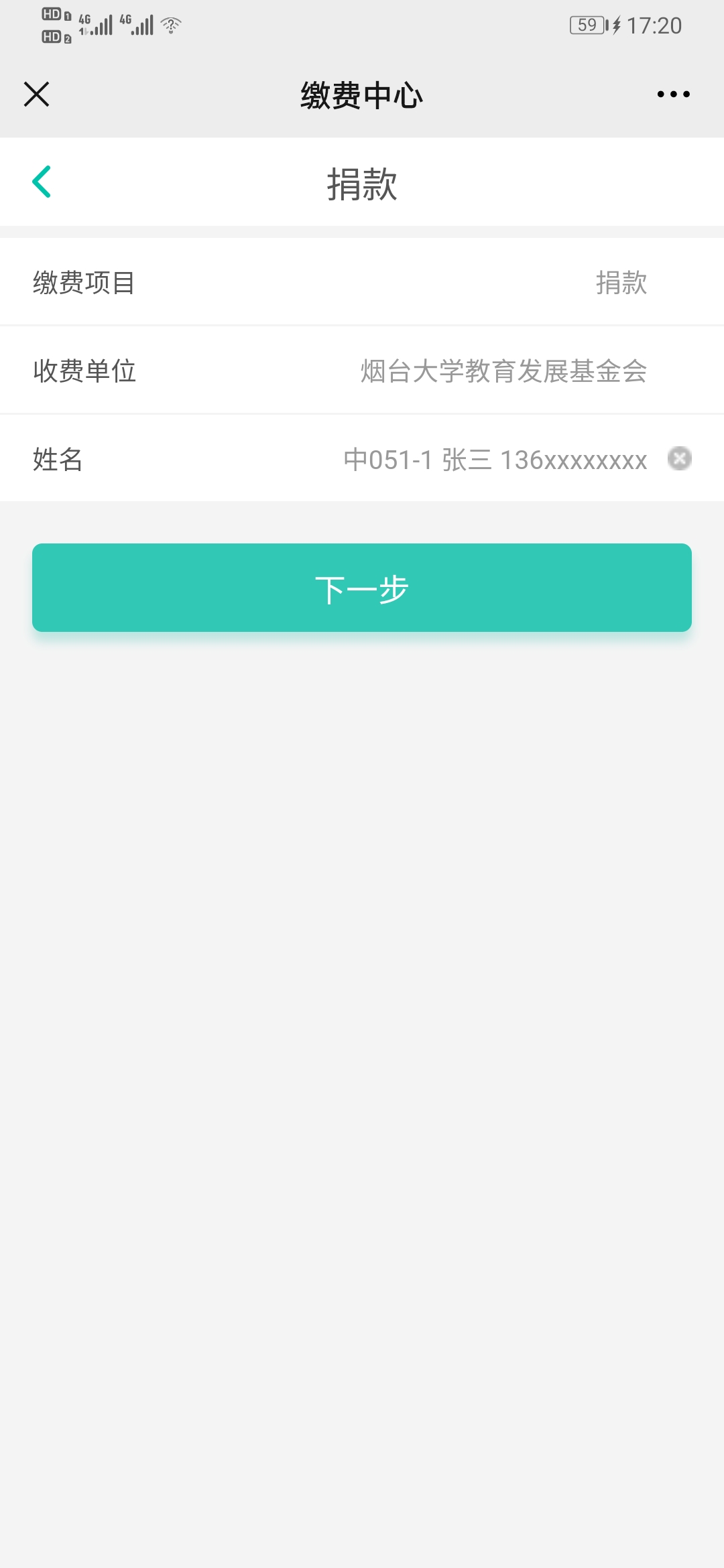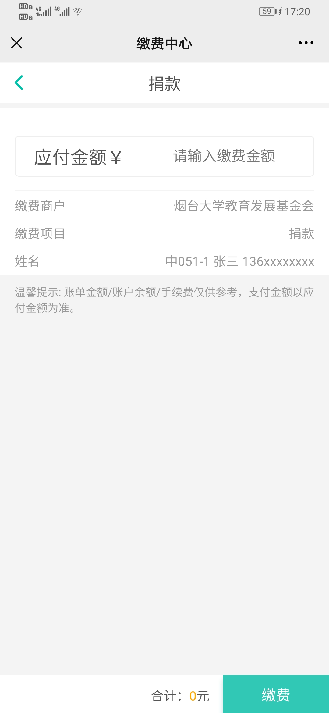微信扫描或识别下方二维码,填写信息,点击下一步,输入捐款金额,点击缴费即可。