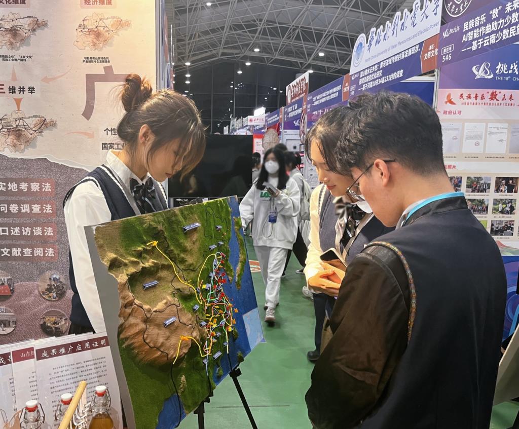 值得一提的是,学校和学院还专门组织了具有往届“挑战杯”经验的老师们就答辩稿修改、布展技巧、PPT制作等方面进行针对性指导。在国赛决赛现场,学校和学院的领导和老师更是亲身陪伴,为团队成员加油助威,成为了他们最坚实的心灵后盾。“老师们几乎都是利用休息时间来帮助我们的,因为有这些‘主心骨’们在,我们才能毫无后顾之忧地一往无前!”团队成员蔡梦凡感激地说道。