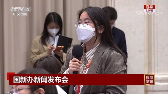 2023年2月,记者王晶在国新办新闻发布会上提问交通运输部部长李小鹏