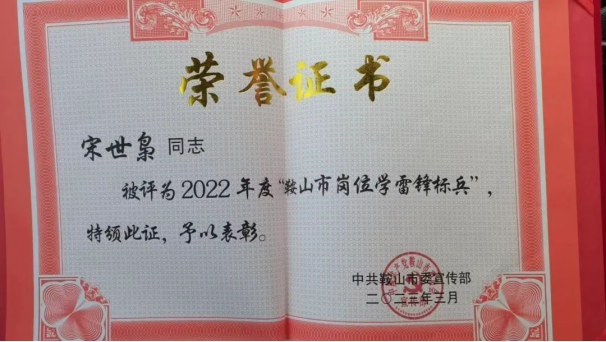 2023年3月25日,宋世枭被中共鞍山市委宣传部评为2022年度“鞍山市岗位学雷锋标兵”,成为鞍山市获得该荣誉的唯一一名律师。“其实普法做多了会发现,这项活动带给你的所谓的‘回报’是长线的,是需要循序渐进的。”宋世枭认为,此次获评鞍山市岗位学雷锋标兵,既是一份荣誉,也是一份推动力,督促他在日常的律师工作生活当中继续努力,持续地做好雷锋精神的发扬者和传承者,并带动更多的青年律师加入到学雷锋的队伍当中。“希望更多的青年律师能够在平衡好工作和生活的基础上,多多加入到公益普法当中来。公益普法更多是精神上的回报,自身的社会价值的体现和满足,这个是很开心的事情,也是物质上的回报无法获得的快乐。”