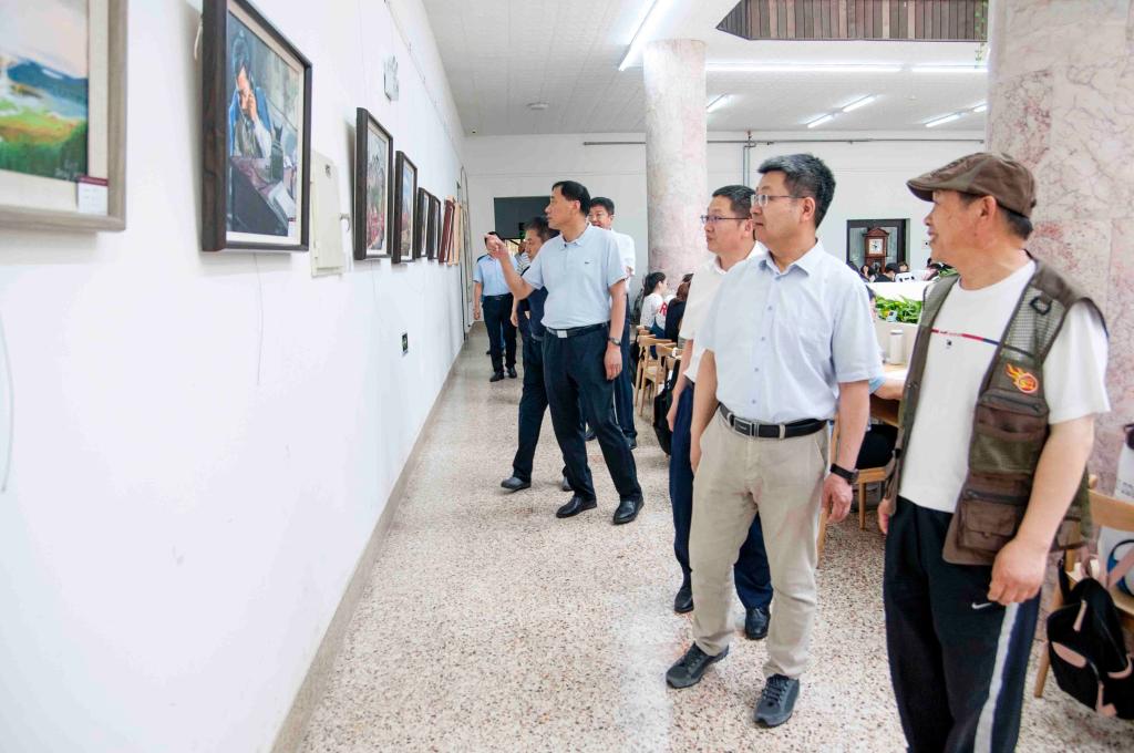 【本站讯】6月28日上午,“丹青颂伟业 光影传百年”庆祝中国共产党成立100周年教职工书画摄影作品展在承先图书馆举办。学校领导张伟、段培永、张殿臣、孙祥斌、宋中民、周胜良、郝曙光、王强、李合亮、毕可志与学校办公室、党委组织部、党委宣传部、校工会等部门主要负责人及部分作者共同参观展览。