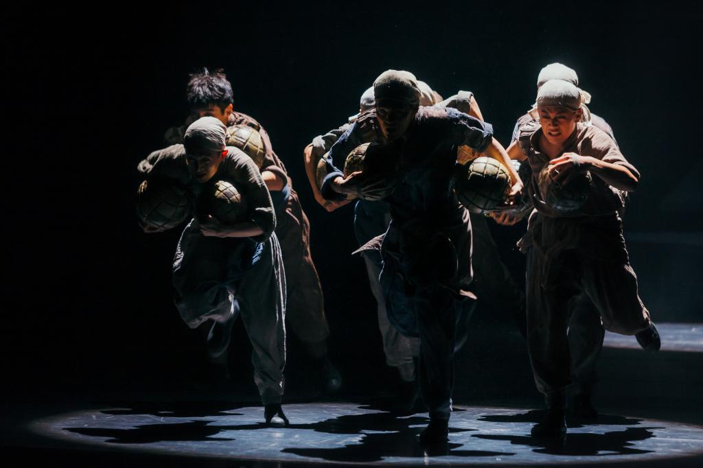 在舞蹈配乐上,《地雷战》将具有海阳特色的民间小调、秧歌剧调以及具有音乐性的民间方言赋予民族摇滚乐的音乐风格和精神内涵,形成了融合电子、民族、电声、大管弦乐在内的包容性音乐气质。在舞美方面,该剧运用象征性的造型元素和隐喻性的艺术语汇,山、石、雷等舞台道具与演员刚柔并济的舞姿融为一体,让现场观众有身临其境之感。