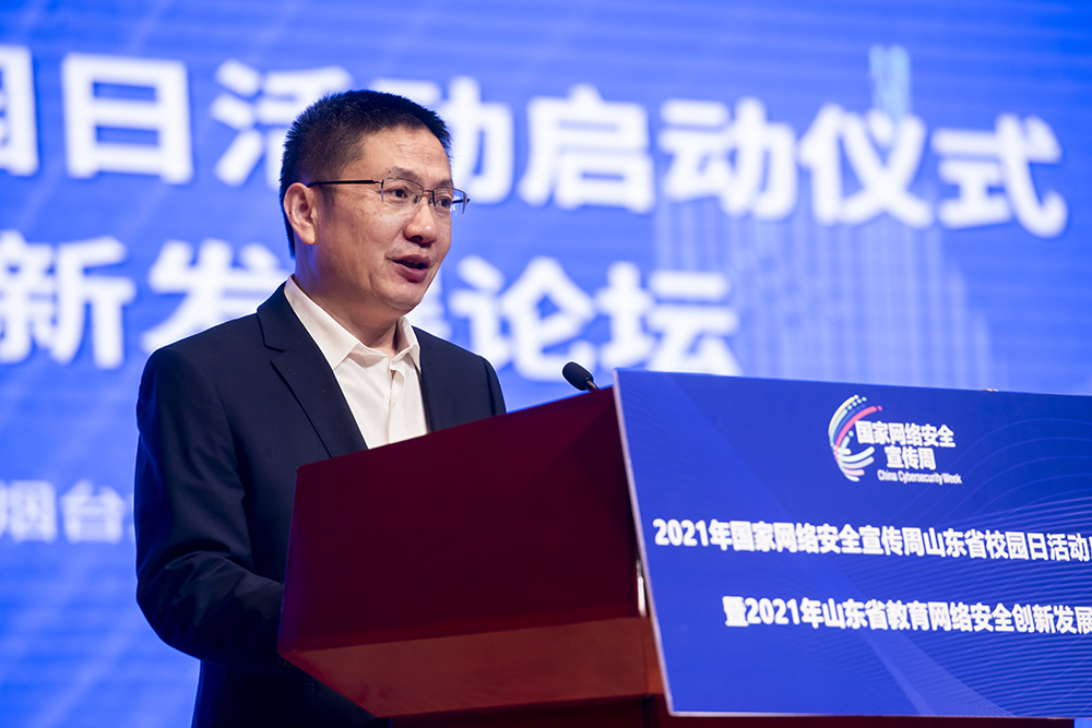 【本站讯】网络安全为人民,网络安全靠人民。10月12日,2021年国家网络安全宣传周山东省校园日活动启动仪式暨山东省教育网络安全创新发展论坛在sunbet申搏官方网站举办。活动由省委网信办和省教育厅联合主办,sunbet申搏官方网站和山东教育电视台承办。山东省委网络安全和信息化委员会办公室副主任赵树岭;山东省委教育工委副书记,省教育厅党组副书记、副厅长白皓出席活动并讲话。sunbet申搏官方网站校长段培永出席活动并致辞,国家计算机网络与信息安全管理中心山东分中心主任安茂波,sunbet申搏官方网站副校长宋中民、毕可志,山东警察学院党委委员、副院长鞠旭远,烟台市委宣传部副部长、网信办主任王洪青,公安部第一研究所专家李坤出席启动仪式。