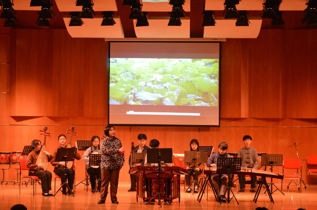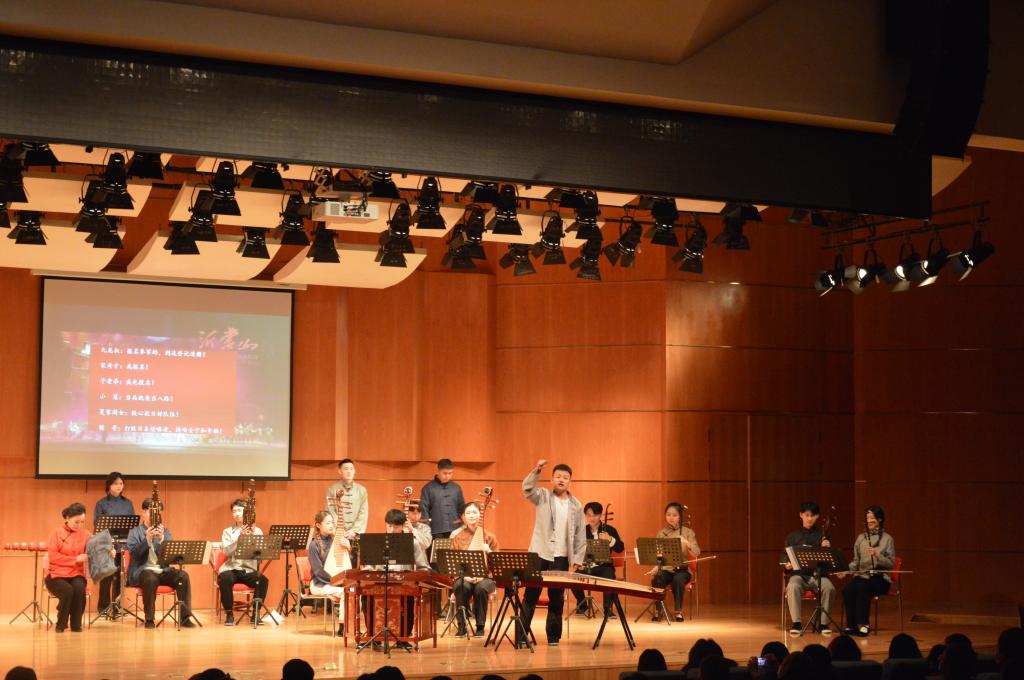 谈及舞台剧策划初衷,姚金佳表示,民乐合奏课存在学生水平不一、乐种不齐、课时较少、各专业声部不均衡等情况,不利于传统大合奏的排演形式。为了让学院全体学生都有登台演出实践的机会,创新性地将民乐合奏舞台剧化,我们采取了“学生自愿+竞选”的方式,将每首乐曲分配给最适合的学生,采取小组合形式进行排演。按剧情需要加入声乐、舞蹈,部分演奏者会有台词、表演,练习曲目相对少而精,突显学生个人展示,练习更有动力。