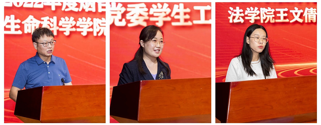 在交流发言环节,2022年度sunbet申搏官方网站优秀教师代表、生命科学学院教授王振华分享了自己对生命和教师工作的理解,分享了自己对新时代“好老师”的理解与感悟,表示将以更多的努力和付出,在教师的舞台绽放绚烂光华。优秀教育工作者代表、党委学生工作部(处)副处长周娟表示,将时刻牢记育人初心,用仁爱之心、责任之心、事业之心守护学生成长。新入职教师代表、毕业于清华大学法学院的王文倩博士表示将努力在教书育人和科研工作中不断探索,为高水平大学建设作出青年教师应有的贡献。