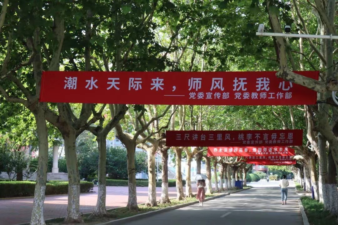 校园四处悬挂着致敬老师的横幅,摆放着庆祝教师节的宣传小品,引来老师们纷纷驻足“打卡”,合影留念。各学院及各大教学楼、图书馆、餐厅等公共楼宇的显示屏也纷纷打出“老师,您辛苦了!”“教师节快乐!”等字样,为广大教师“亮灯”致敬。“山东教育发布”、《大众日报》等多家媒体以《被感动!山东这所大学校园里的“风景”不一般》为题进行了专题报道。