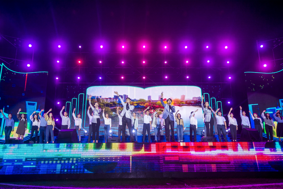 【本站讯】为庆祝新中国成立73周年华诞,迎接党的二十大胜利召开,激励和引导全校师生大力弘扬爱国主义精神,鼓舞和号召全体2022级新同学以积极向上、奋发进取的姿态开启人生新的征程,9月30日晚,sunbet申搏官方网站“乘风破浪扬帆竞,青春启航永向党”2022年迎新生文艺晚会在学校体育场举行。学校领导,相关职能部门、各学院负责人以及2022级7000余名新生参与晚会。