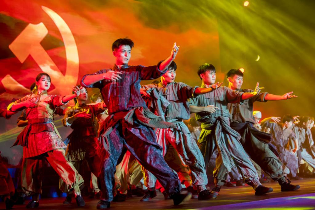 第一篇章中,音诗画《青春的对白》通过百年前的先辈青年和当今新时代青年跨越时空的心灵对白,彰显当代青年强烈的爱国主义情怀。歌舞《孤勇者》赞颂人民英雄、缅怀革命先烈,激励当代青年传承红色基因、牢记使命担当。舞蹈《地雷战》生动再现了胶东人民面对外强侵略时的民族大义与骁勇善战,深情讴歌了齐鲁儿女在中国共产党领导下的不屈斗志与家国情怀。讲述《有理想》“光荣在党50年”纪念章获得者王典金教授结合自己的成长与奋斗故事,诠释了作为一名共产党员的理想信念与人生追求。舞蹈《党旗在我心中》舞动红色青春,以青年之名抒发了永远跟党走、奋进新征程的家国情和报国志。