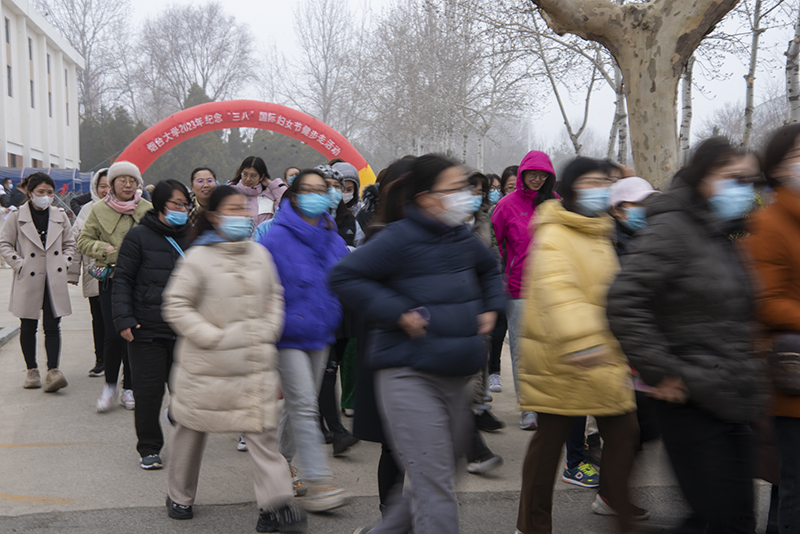 随着发令枪响,伴随着热烈的锣鼓声,孙祥斌和冯素玲与女教职工们迈开轻快的步伐,沿着临海路,欣赏着校园内蓬勃的新绿和绽放的春花,一路欢声笑语,充分展现积极乐观、健康向上的巾帼风采。