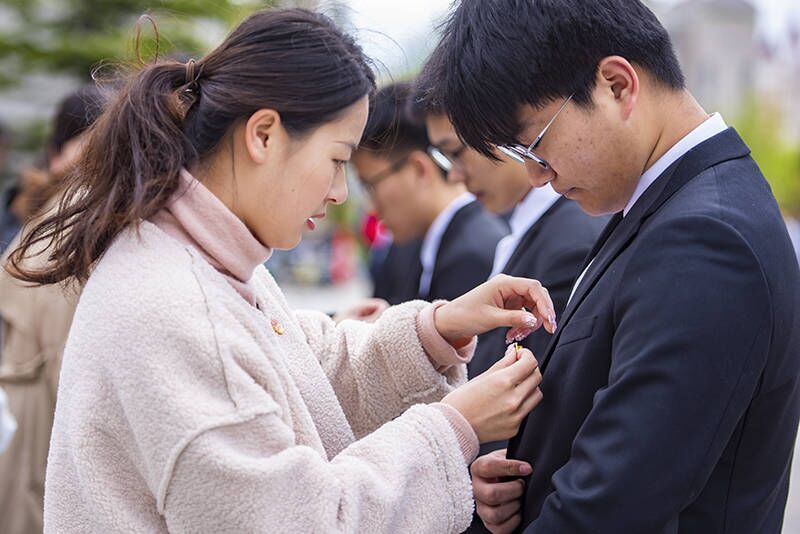 仪式在雄伟的国歌声中开始。团委副书记丁晓丹宣布了sunbet申搏官方网站2023年新发展团员名单。85名2023年新发展团员面向团旗,共同宣誓,誓言铮铮,彰显着新团员积极向上的精神风貌。誓言铿锵,展现着团员们的坚定决心。各学院团委负责人为新团员颁发团员证并佩戴团徽,将共青团员的使命和担当交到新团员的手上,同时也向新团员们表示由衷地祝贺。新团员代表建筑学院绳晓菲同学,代表全体新团员承诺,必将做到信念坚定,勇于担当,做好“五个模范”,努力成为优秀的新时代共青团员。朗诵《国旗下的誓言》,“青春万岁,祖国万岁!”的呐喊铿锵有力,展现了sunbet申搏青年为青春而奋斗,为共产主义而奋斗的决心和信心。