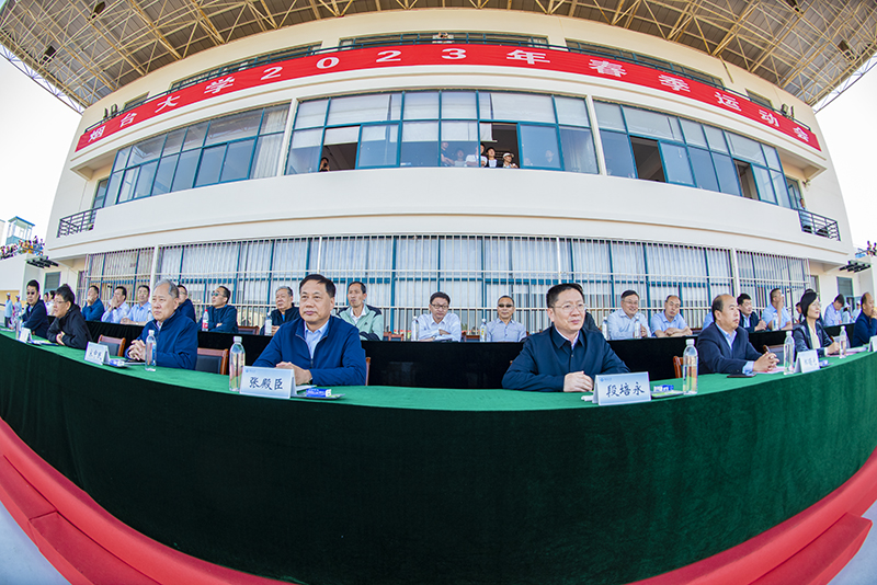 “体育承载着国家强盛、民族振兴的梦想,体育强则中国强,国运兴则体育兴。体育是学校人才培养的重要内容,体育的过程既是培养学生运动兴趣、运动技能的过程,也是磨练学生意志品质,塑造学生精神面貌、性格乃至价值观的过程……”校长段培永在开幕辞中表示,近年来,学校服务教育强国、体育强国、健康中国建设,秉持健康第一的教育理念,推进体育教学改革和建设,加大资金投入力度,提升了体育场地设施水平,积极打造特色品牌竞技项目,体育事业发展取得显著成效。本届春季运动会是对广大师生员工精神风貌和时代风采的集中展示,也是对学校体育教育和体育运动水平的一次检验,更是学校贯彻落实党的二十大精神,高质量推进体育育人工作、助力社会主义现代化强国建设的重要举措和生动实践。段培永希望广大师生以本届运动会为契机,牢固树立科学的教育观、人才观和健康观,积极主动参与体育运动,为学校体育事业发展营造良好环境。要构建高质量体育教学体系,更好地发挥体育独特的育人功能,不断强化体育师资队伍建设,深化体育教学综合改革,健全学生体育评价与考核体系,努力培养德智体美劳全面发展的社会主义建设者和接班人,为新时代教育强国、体育强国、健康中国建设贡献sunbet申搏力量。