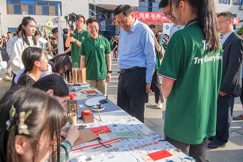 张殿臣对特里尔学院成立两年来取得的成绩表示祝贺,鼓励学院要牢牢坚持党对中外合作办学的全面领导,深化对中外合作办学规律的认识,不断把培养具有全球视野和全球竞争力的人才摆在更加重要的位置。他表示,要充分利用好“中德友谊桥”文化交流节的平台,彰显学院建设发展、国际交流与合作的优势和特色,向着中外合作办学新高地的目标奋勇前进,为学校高水平大学建设作出新的更大贡献。
