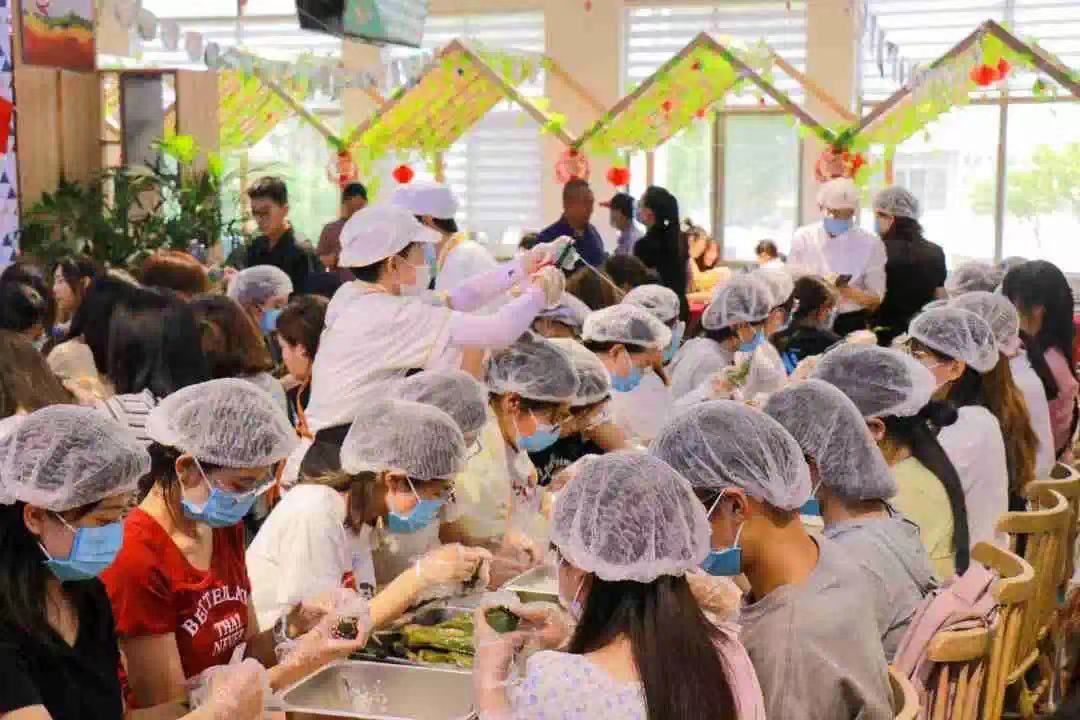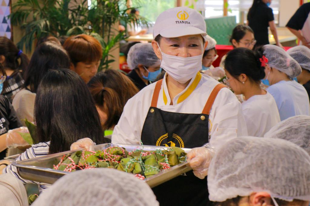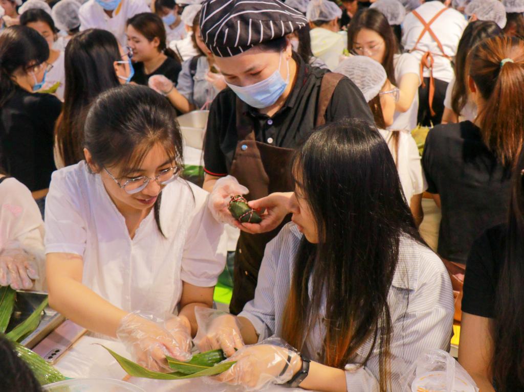 “太有意思了!这是我第一次自己包粽子!”就在刚刚,来自核装备与核工程学院的高鸿宇在工作人员的耐心帮助下成功包出了一个棱角分明、翠绿精致的粽子。原来,为了让同学们获得更好的活动体验,饮食服务中心特地在每个桌位都安排了餐厅工作人员作为“粽子指导师”进行现场指导。粽叶香下,气氛融融,欢声笑语不断,大家各展所长,相互交流包粽诀窍,三角形的、菱形的,各式各样,不一会儿,一堆堆形态各异的新鲜粽子就呈现在眼前,随后入锅慢蒸,馥香四溢。此外,学校多个餐厅还免费向学子们送上香粽,小小的绿色三角承载着暖暖的sunbet申搏温情。