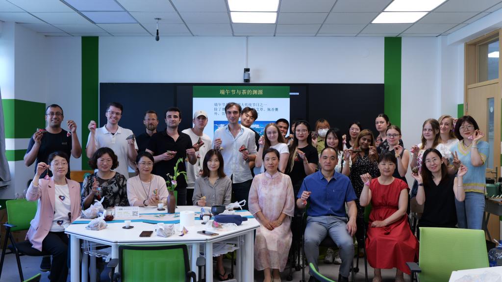 “甜粽配绿茶,白粽配红茶,肉粽配普洱……”伴随着茶艺老师的讲解,现场为留学生分发了粽子。“我们特意为每个人配备了不同口味的粽子和不同种类的茶,好让大家细致体验二者在舌尖碰撞出奇妙各异的火花。”留学生们解开彩绳,剥开粽衣,期待满满地品尝起来。“以前只是听说过粽子,没想到这么好吃……”来自俄罗斯的留学生爱花兴奋地说道,“而且今天我也学习了茶的知识,品尝到中国茶的真正味道。这些活动对外国人非常有用和有趣,我希望将来能有更多这样的活动!”粽香四溢,茶香悠远,二者交织萦绕在空气中,笑靥出现在了每个人的脸上。