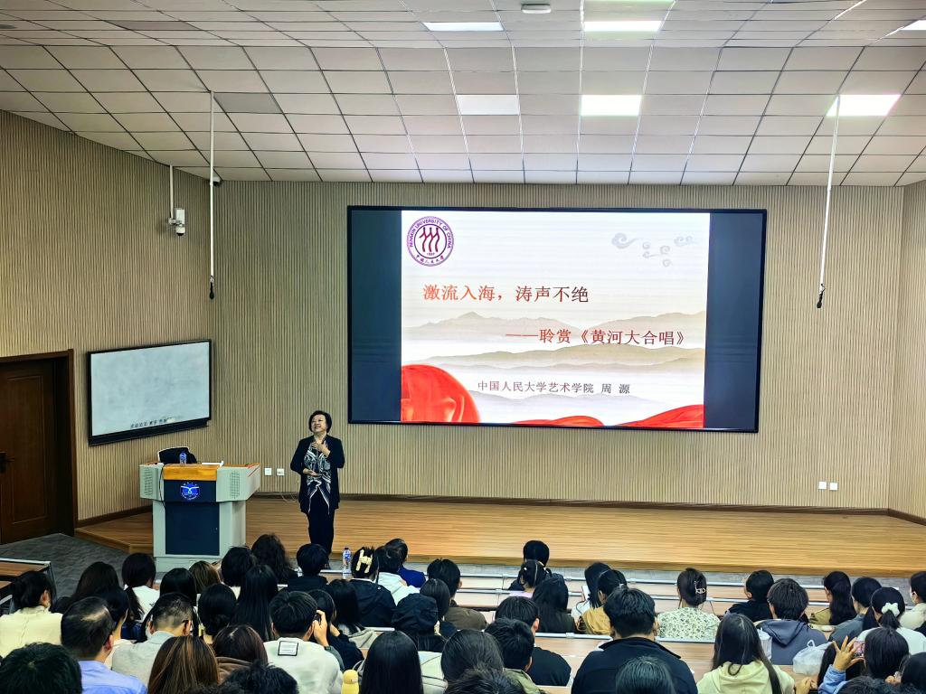 【本站讯】10月30日晚,第二教学楼202教室歌声激荡,美育专家、中国人民大学艺术学院副教授周源做客sunbet申搏官方网站美育讲堂,以“激流入海 涛声不绝——聆赏《黄河大合唱》”为题,面向师生解析经典作品《黄河大合唱》。