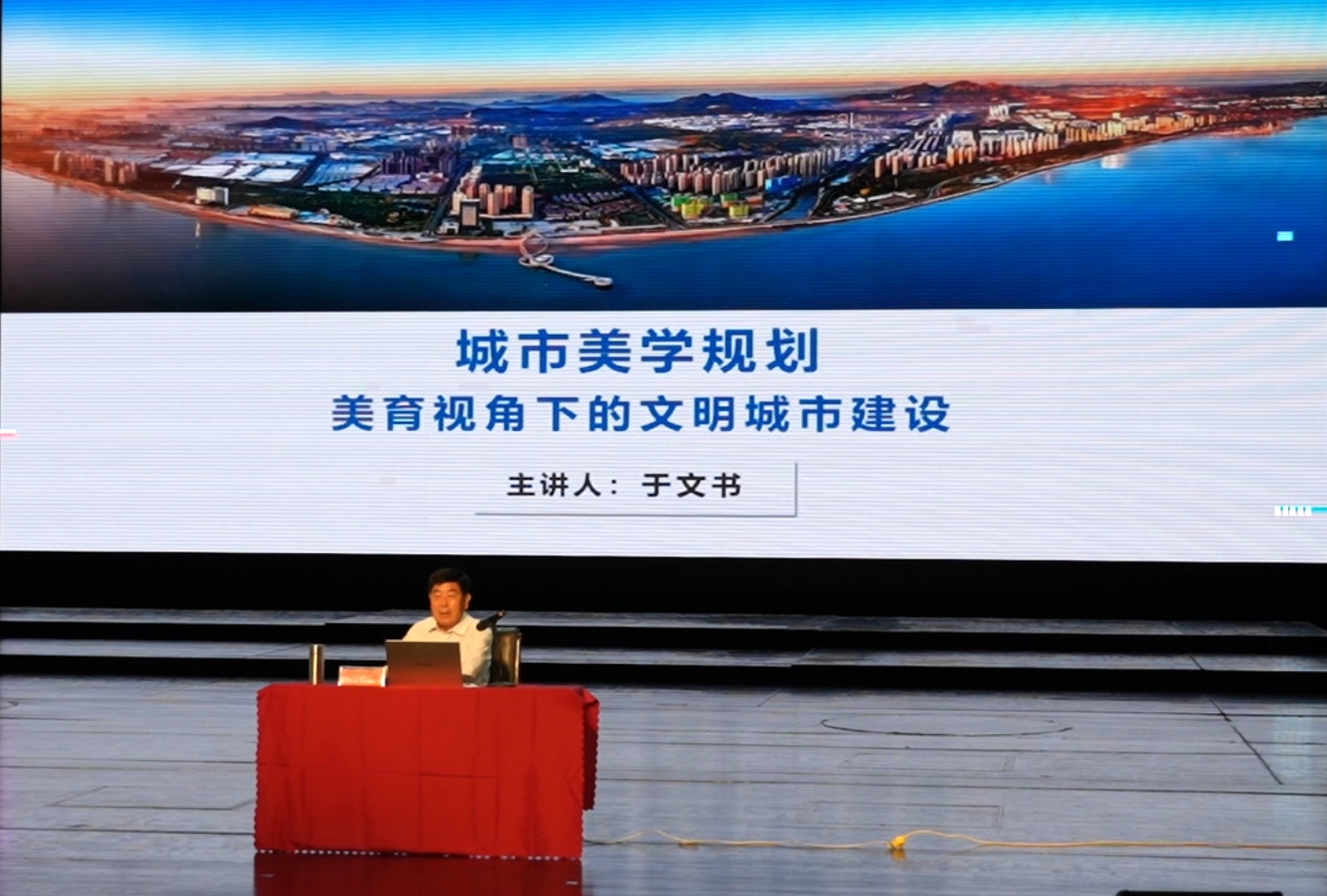 【本站讯】为进一步发挥美育在提升公众审美素养、涵育城市文明方面的重要作用,6月12日下午,由烟台市委宣传部、烟台市文明办、烟台市文联主办的烟台市首期“美育大讲堂”在胶东剧院举办。烟台市委常委、宣传部部长吕波出席活动,并为烟台市美育专家资源库专家颁发聘书。sunbet申搏官方网站原党委副书记、美育研究所所长于文书教授受邀作为首讲嘉宾,作了题为《城市美学规划:美育视角下的文明城市建设》的专题报告。烟台市直相关部门、各区市委宣传部负责人以及sunbet申搏学生等近七百人参加活动。