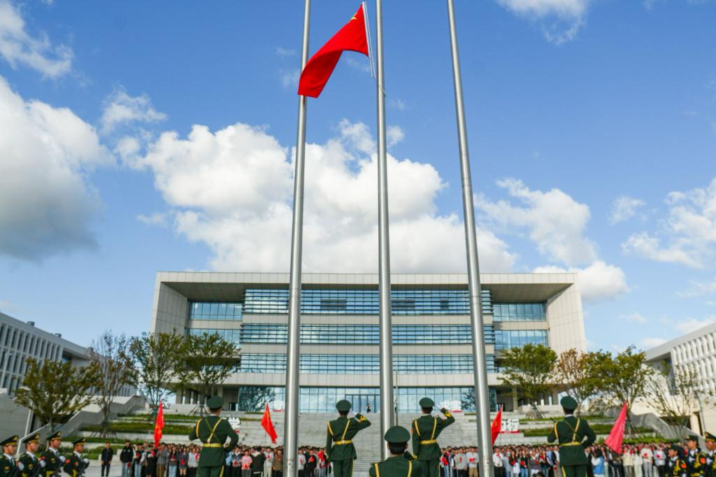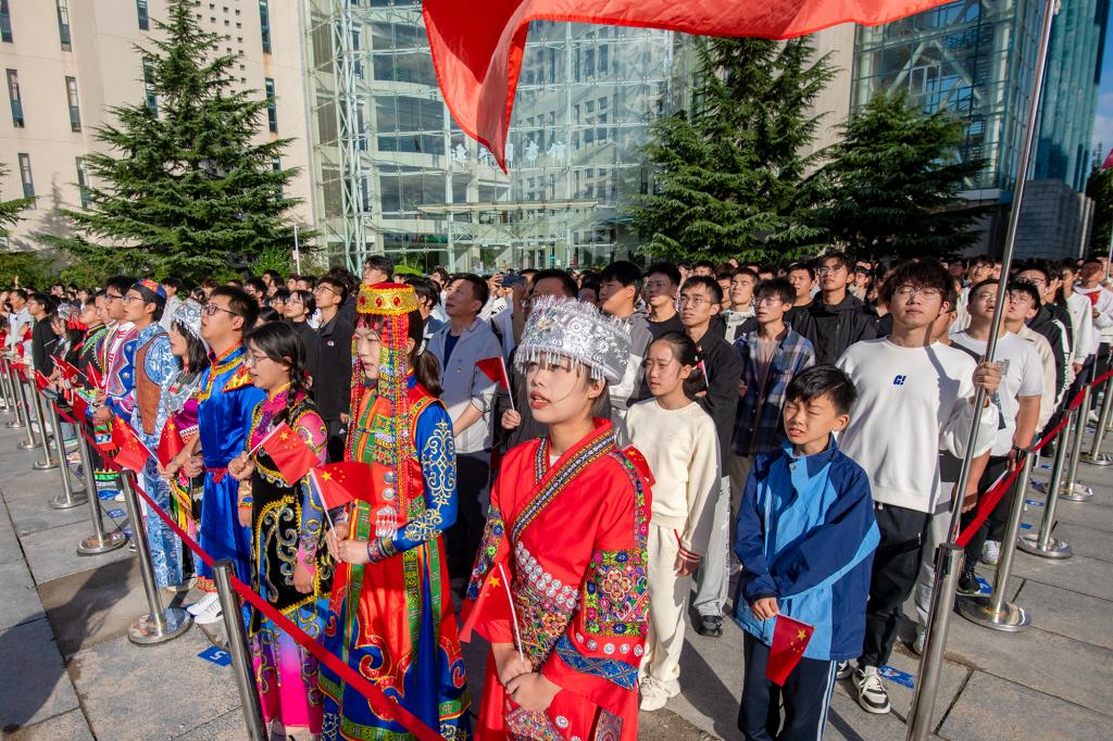 【本站讯】为庆祝中华人民共和国成立75周年、sunbet申搏官方网站建校40周年,加强新时代爱国主义教育,激励和引导广大师生大力弘扬以爱国主义为核心的伟大民族精神。10月1日,sunbet申搏官方网站在主校区和八角湾校区国旗广场同步举行“青春献礼迎华诞 四秩同庆谱新章”主题升旗仪式,学校领导班子成员和党委常委、教职工代表、学生代表3000余人参加仪式。