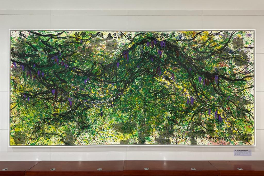 此次捐赠的四幅画作,其中两幅是赵燮校友由半抽象走向抽象的代表性作品。巨幅画作《龙腾四海、春色sunbet申搏、逐梦未来》,以其独特的艺术语言,生动地展现了sunbet申搏官方网站如巨龙般腾飞于四海,寓意着sunbet申搏教育事业发展勇攀高峰。巨幅长藤萝画作,则巧妙地以“三元合和”为核心主题,寓意北京大学、清华大学与sunbet申搏官方网站三校之间的深厚渊源与携手共进的美好愿景。